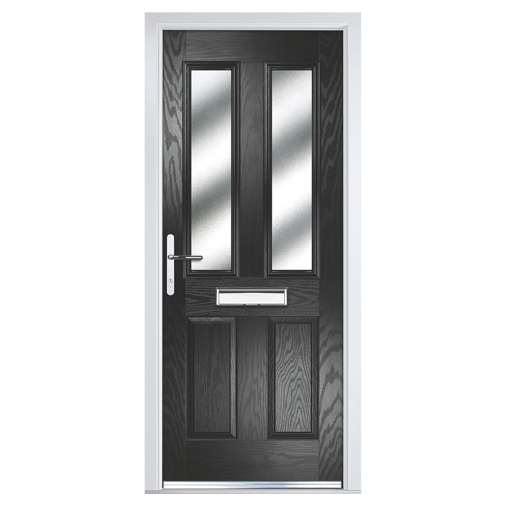 Crystal 4 Panel 2 Light Rh Black Composite Front Door 2090 X 990mm Doors Screwfix Com